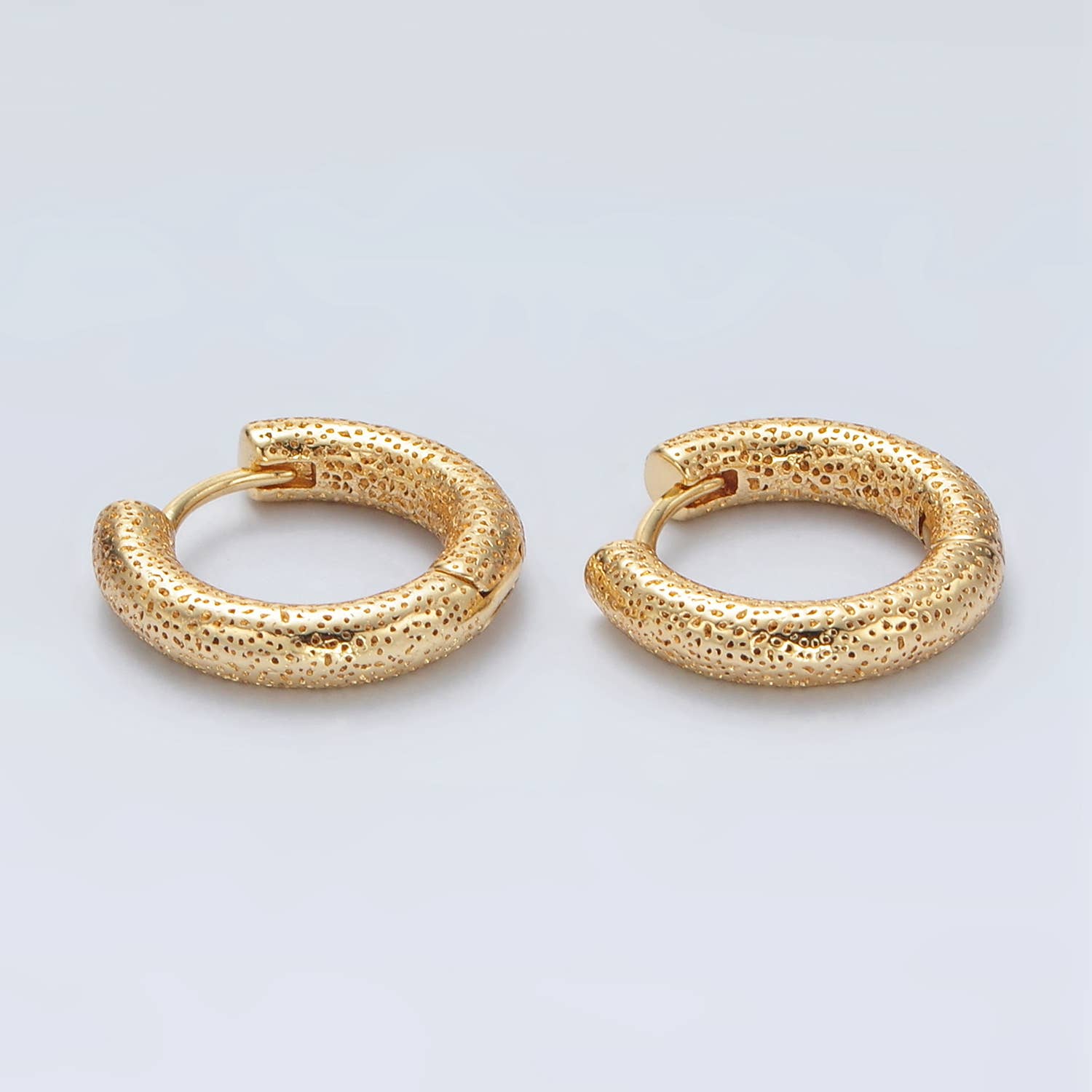 design: simple and easy to wear, yet unique—these dotted textured 24k gold filled huggies are the perfect everyday pair. Great on their own or stacked for extra style.