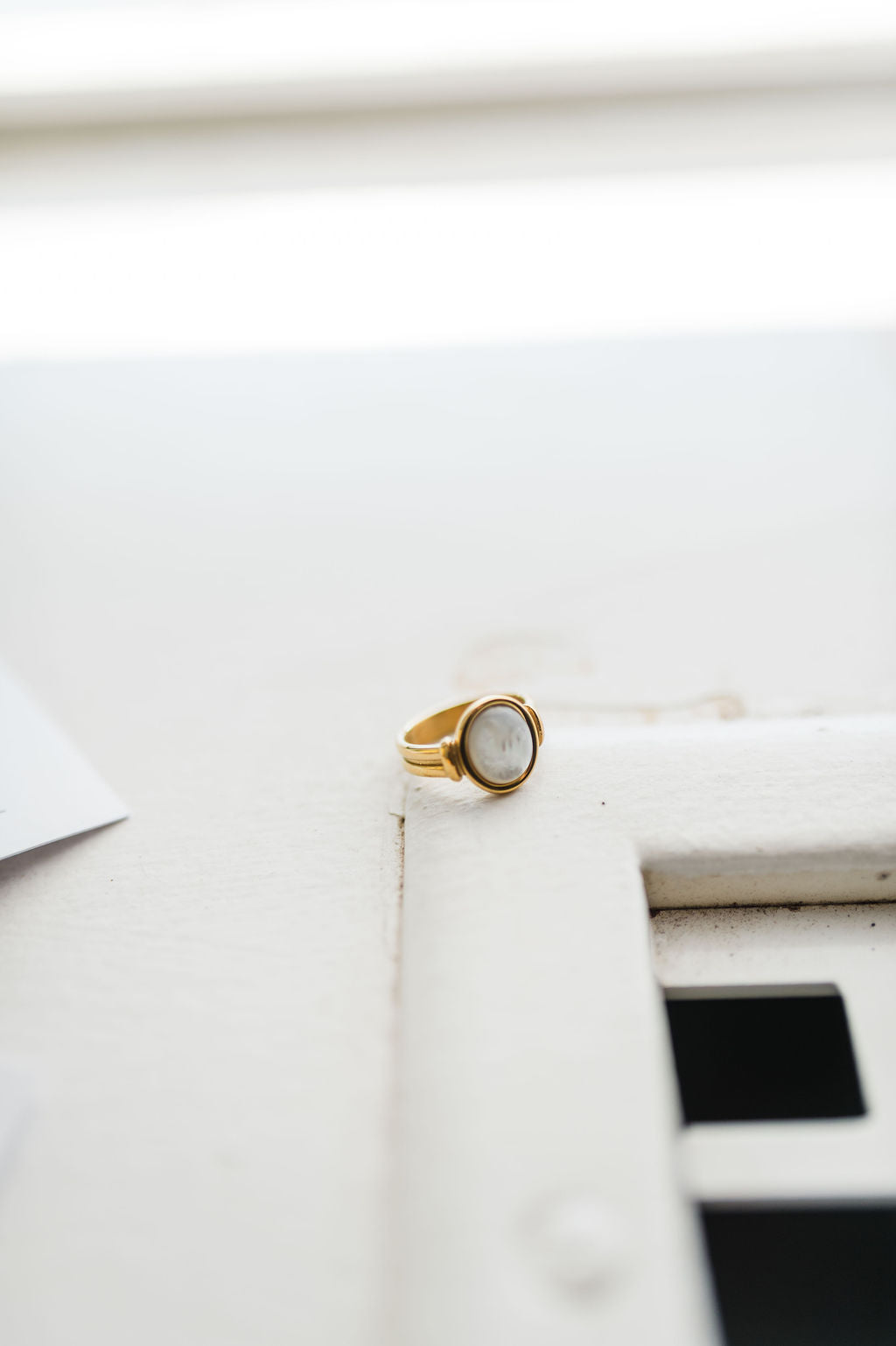 design: bring a touch of the coast to your style with this classic shell stone ring. timeless, lightweight, and easy to wear every day.