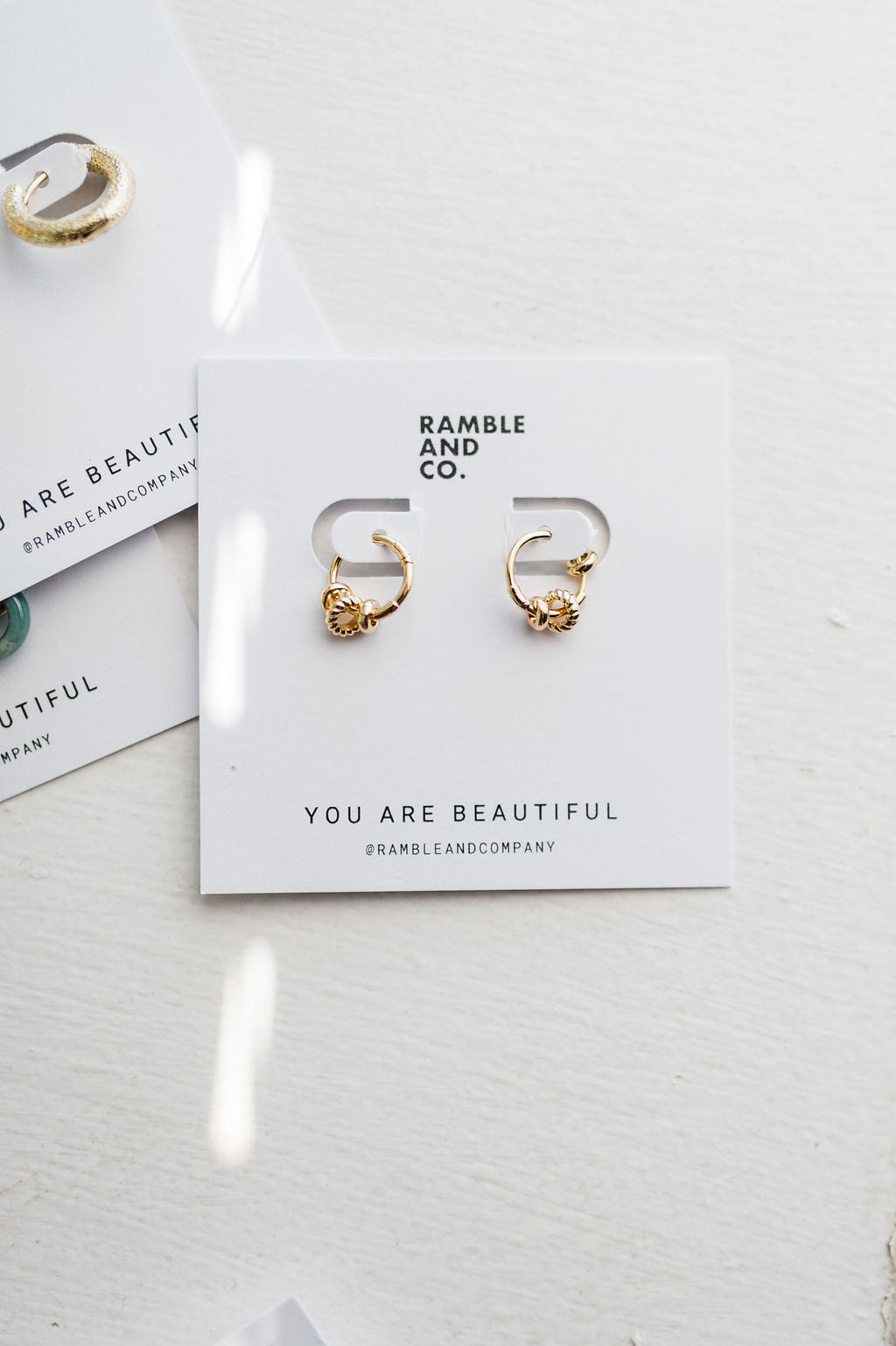 design: a twist on a classic! rope-textured rondelle link hoops that add movement and style to your look.