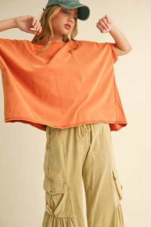 mineral washed oversized crop tee | burnt orange