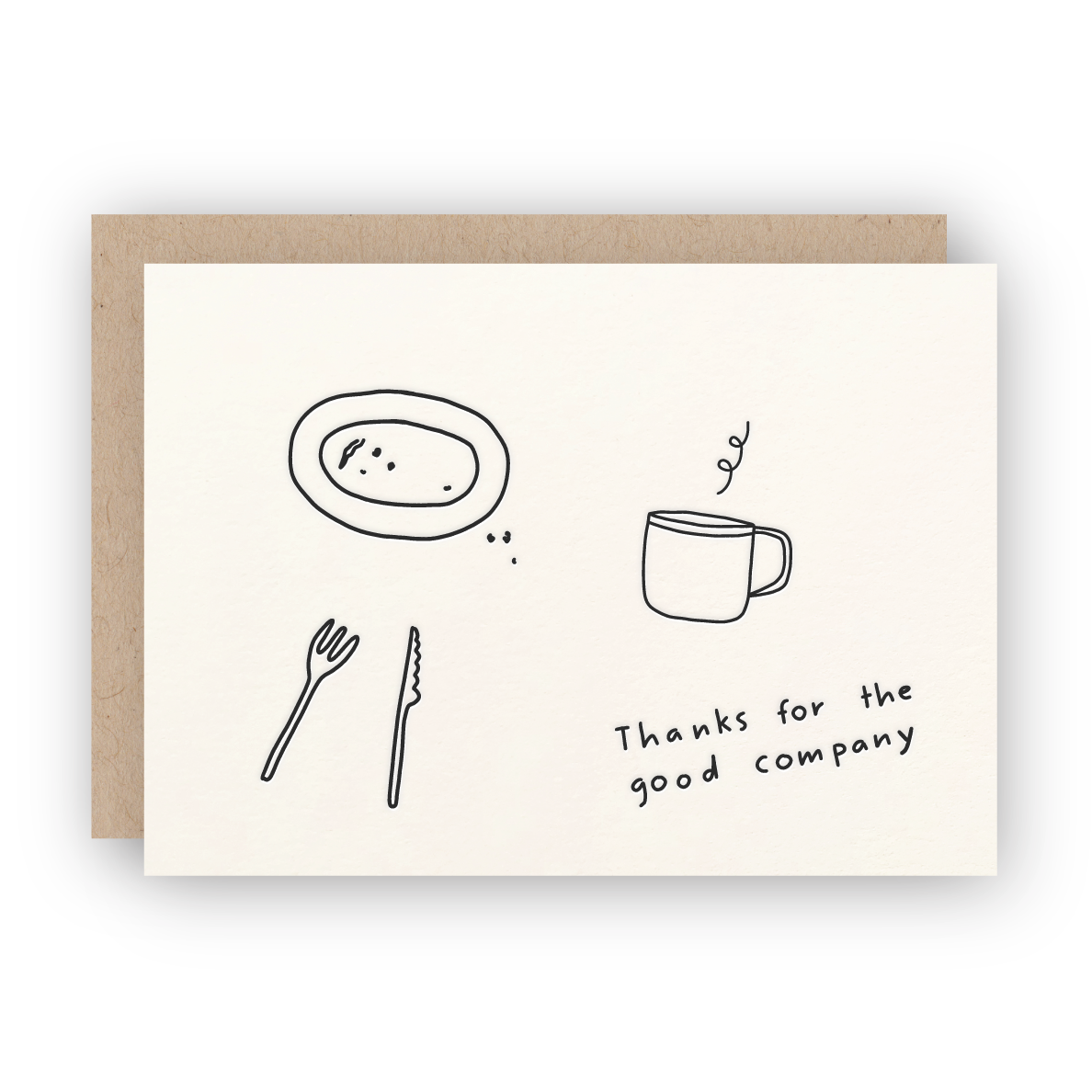 about: for the host who knows how to make every dinner feel like an occasion, this elegant letterpress card is the perfect way to say thanks — timeless, textured, and thoughtfully handcrafted.