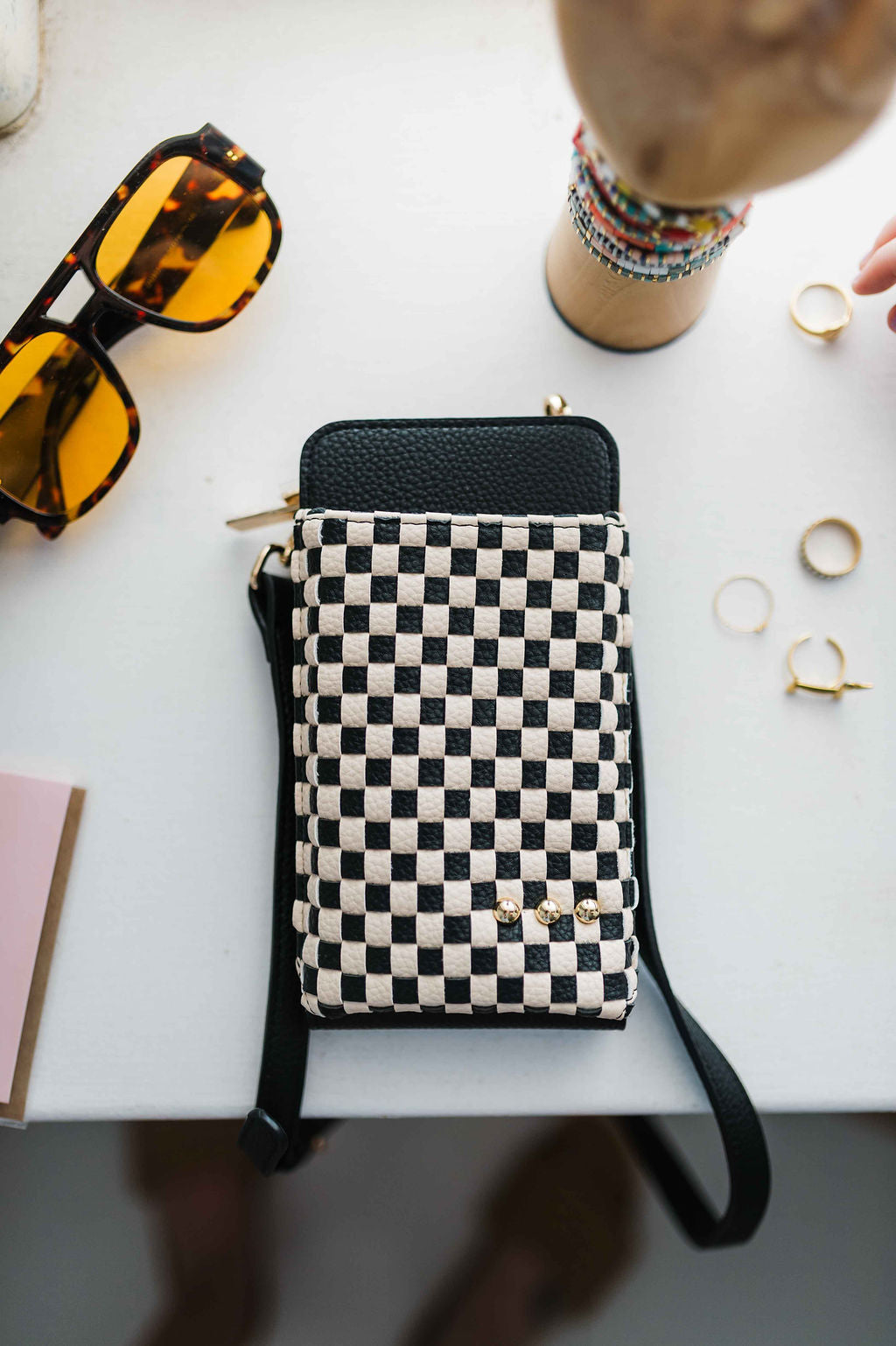double duty phone bag | checkered black