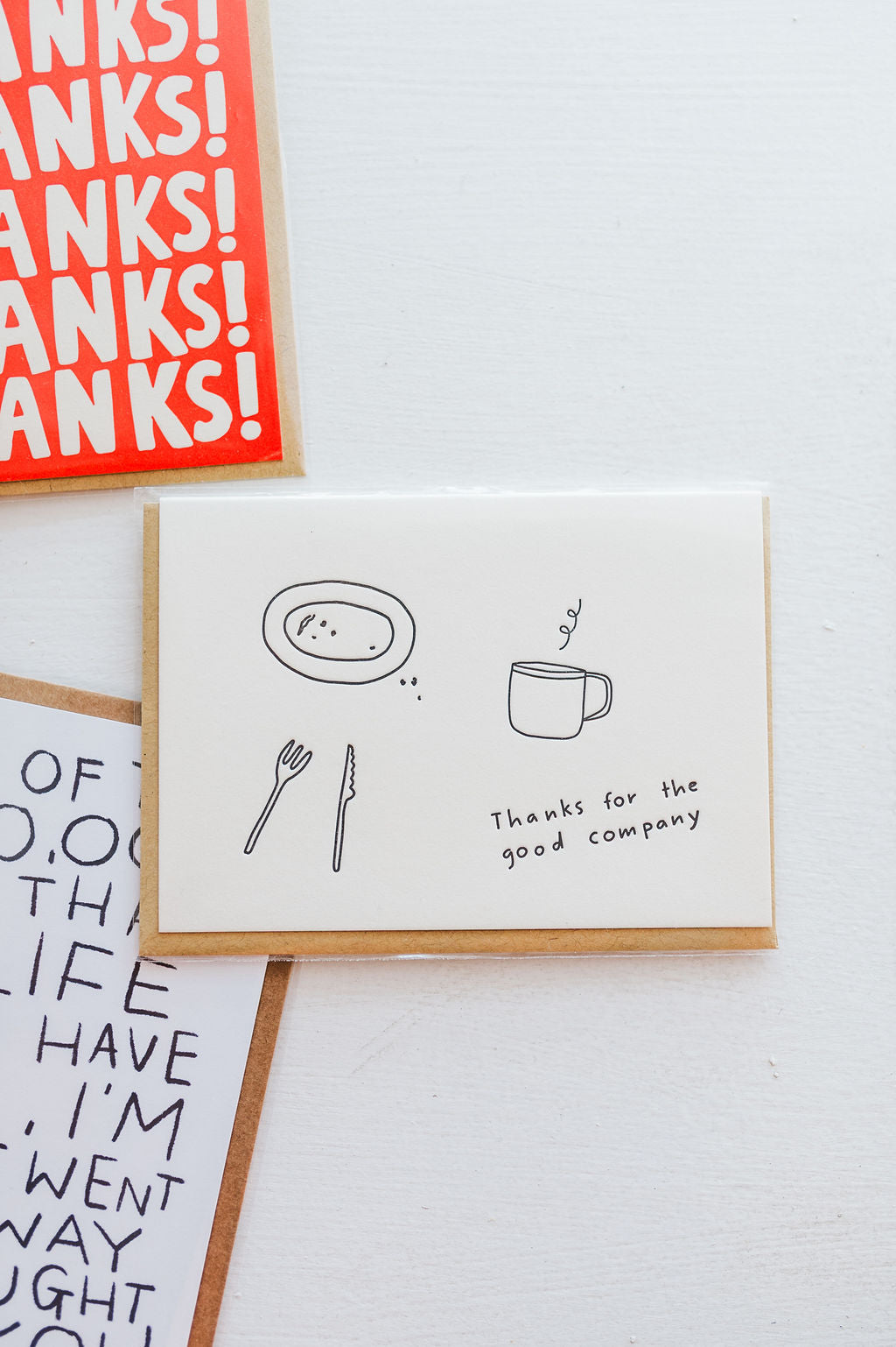 about: for the host who knows how to make every dinner feel like an occasion, this elegant letterpress card is the perfect way to say thanks — timeless, textured, and thoughtfully handcrafted.