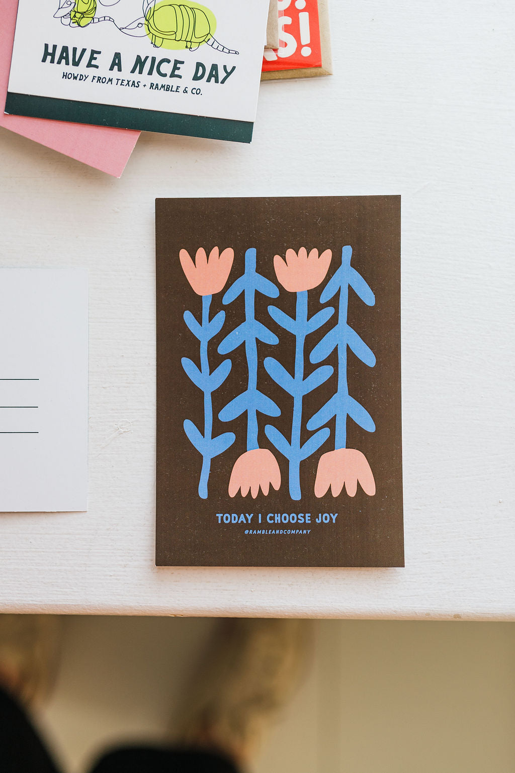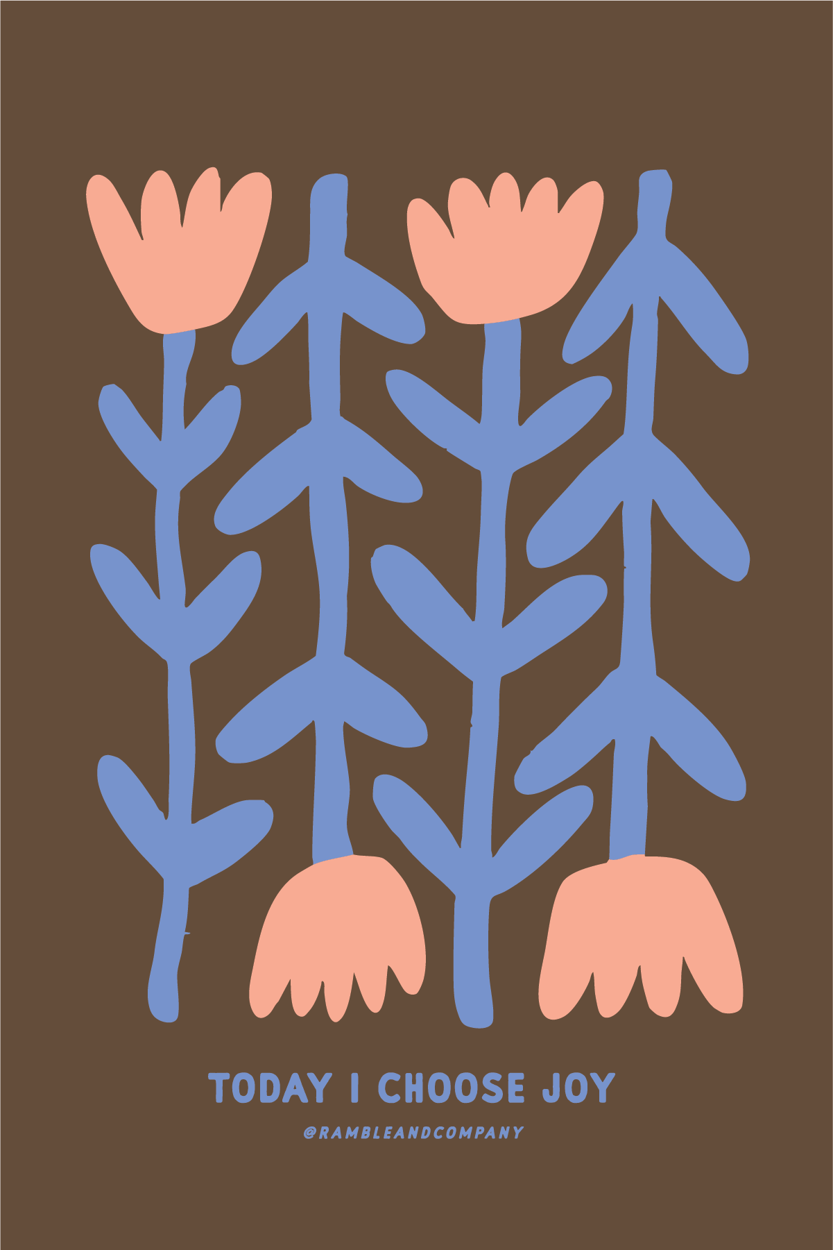 the design: a new floral design with a Scandinavian vibe, words read "today I choose joy"