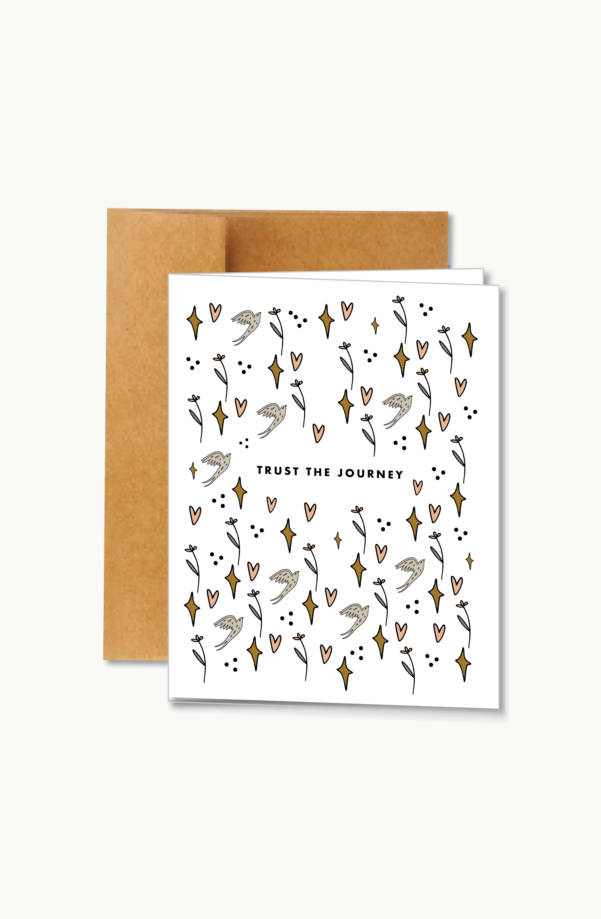 this card features a beautiful floral design paired with the message “trust the journey.” perfect for encouragement, life transitions, or celebrating someone stepping into a new season.