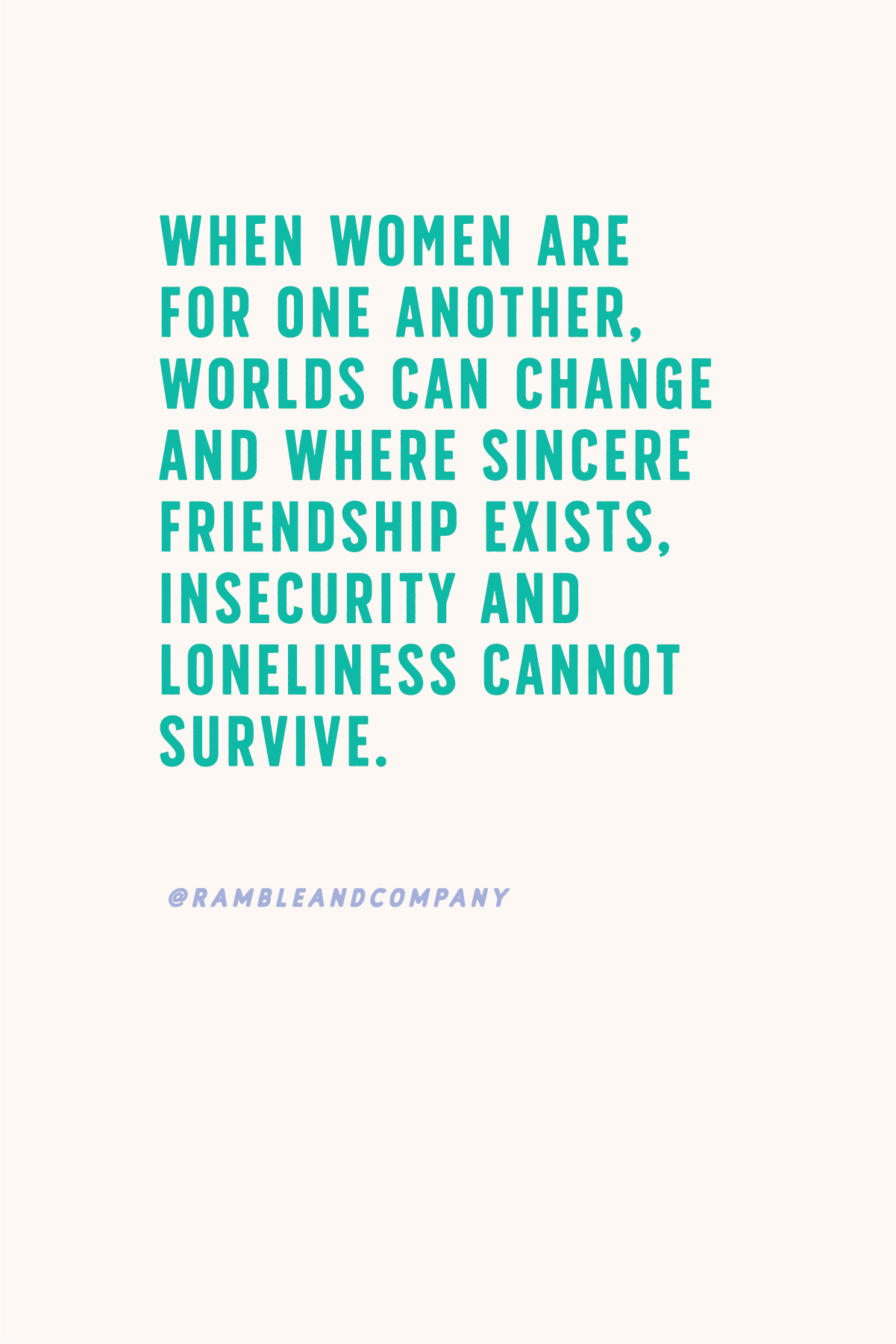 the design:  When women are for one another, worlds can change and where sincere friendship exists, insecurity and loneliness cannot survive.