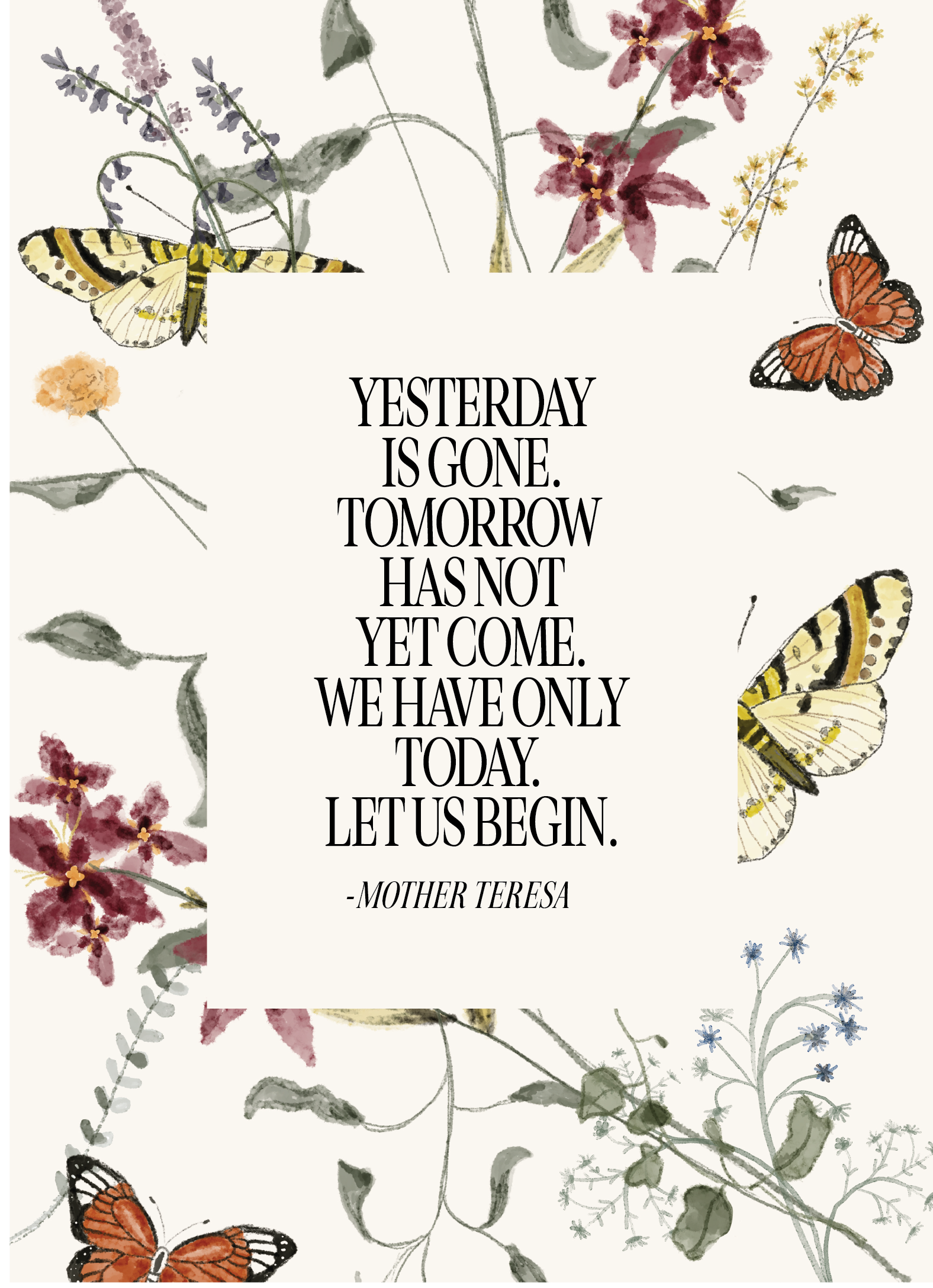 the design: "yesterday is gone. tomorrow has not yet come. we have only today. let us begin." - mother teresa
