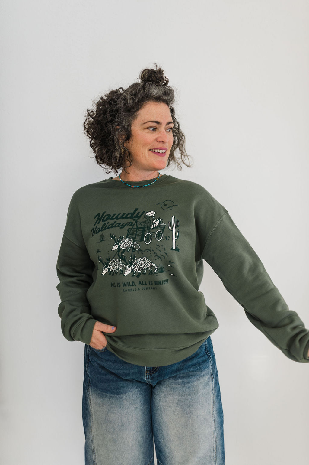 Three armadillos + Skeleton Santa + a wagon full of gifts = peak holiday joy.